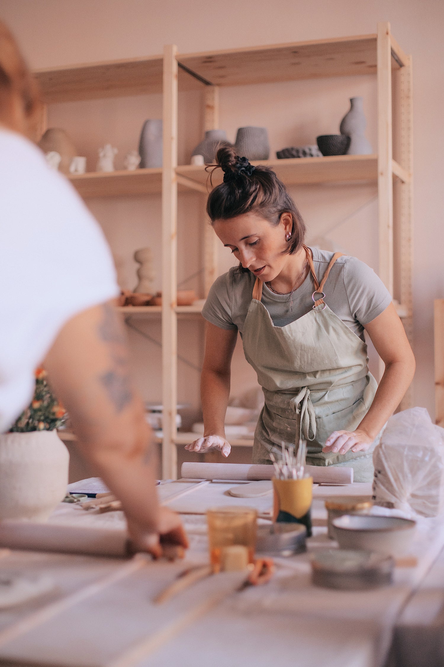 Ich möchte dir zeigen, was ich in vielen Workshops und nächtelangen Töpfer Sessions selbst gelernt habe, wie ich mit Ton arbeite, welche Schritte und Techniken mir geholfen haben und wie wir gemeinsam kreative Ideen mit Ton umsetzen können. Es geht nicht darum, perfekte Keramiken herzustellen, sondern um den Prozess des Töpferns. Die Stücke dürfen auch ein bisschen krumm und schief sein - perfekt unperfekt eben. Genau diese organischen Formen liebe ich beim Töpfern ohne Drehscheibe.